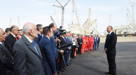İlham Əliyev “Şahdəniz-2” layihəsi üzrə dayaq blokunun dənizə yola salınması mərasimində