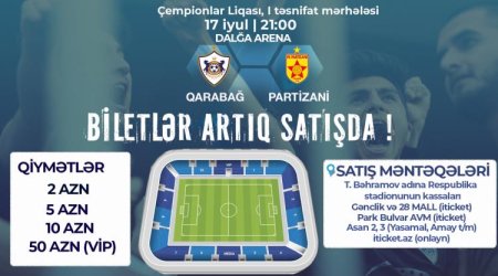"Qarabağ" - "Partizani" matçının biletləri satışa çıxarılıb