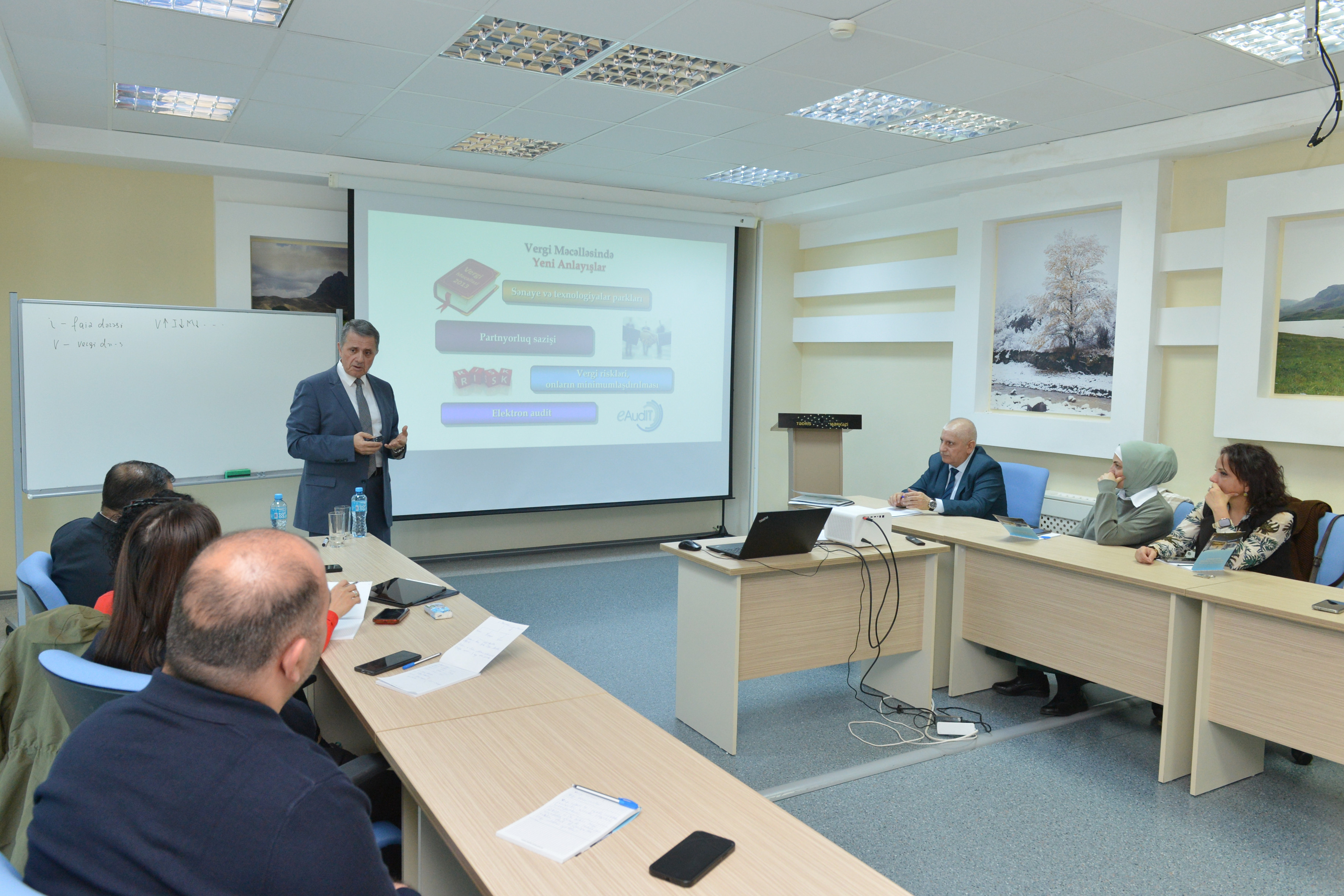 Təlim çərçivəsində Tədris Mərkəzinin şöbə rəisi İmran Qarayev və Vergi siyasəti baş idarəsinin şöbə rəisi Niyaz Şükürov tərəfindən təqdimatlar keçirilib. Çıxışlarda 2000–2025-ci illərdə vergi sisteminin institusional inkişaf mərhələləri, elektron xidmətlərin formalaşması, vergi inzibatçılığında şəffaflıq və səmərəliliyin artırılması istiqamətində görülən işlər, həmçinin “Dövlət Vergi Xidmətinin 2025–2028-ci illər üzrə Strategiyası”nın əsas hədəfləri diqqətə çatdırılıb. Təlim iştirakçıları vergi orqanları ilə media arasında qarşılıqlı əməkdaşlığın gücləndirilməsi, ictimaiyyətin düzgün məlumatlandırılması və vergi mədəniyyətinin təşviqi mövzularında da fikir mübadiləsi aparıblar.