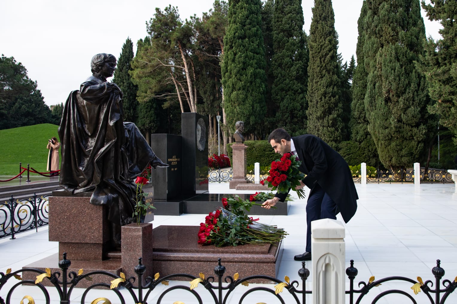 Sonra isə dünya şöhrətli oftalmoloq-alim, akademik Zərifə xanım Əliyevanın və dövlət xadimi Əziz Əliyevin xatirəsi ehtiramla yad olunub, onların məzarı önünə tər çiçəklər düzülüb