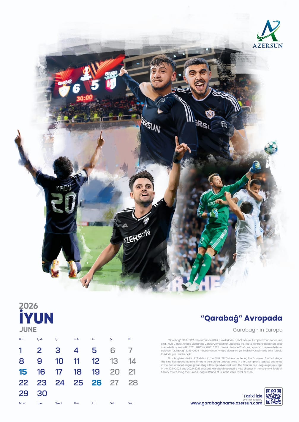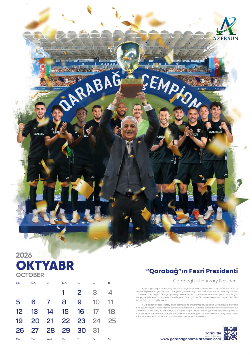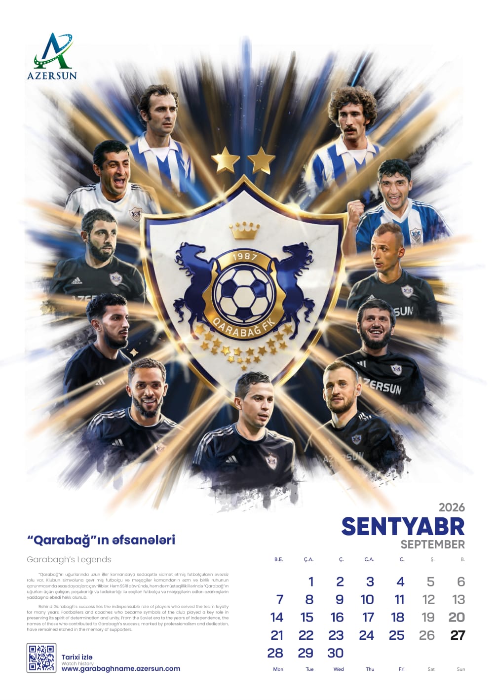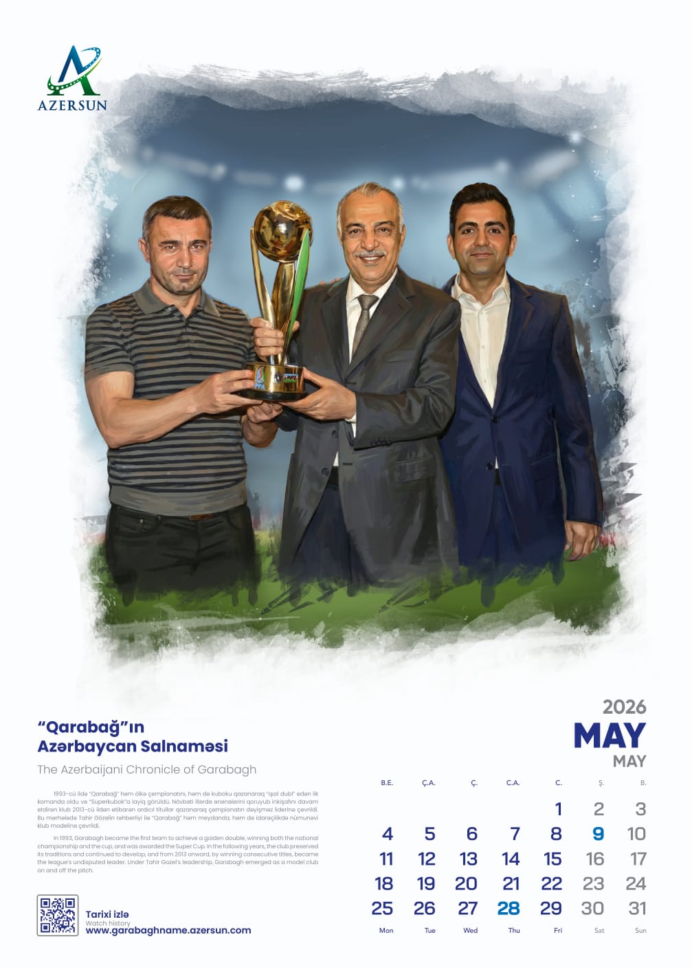 2026-cı il üçün hazırlanan bu təqvim son illərdə futbol sahəsində qızıl dövrünü yaşayan “Qarabağ” futbol klubuna həsr olunub.