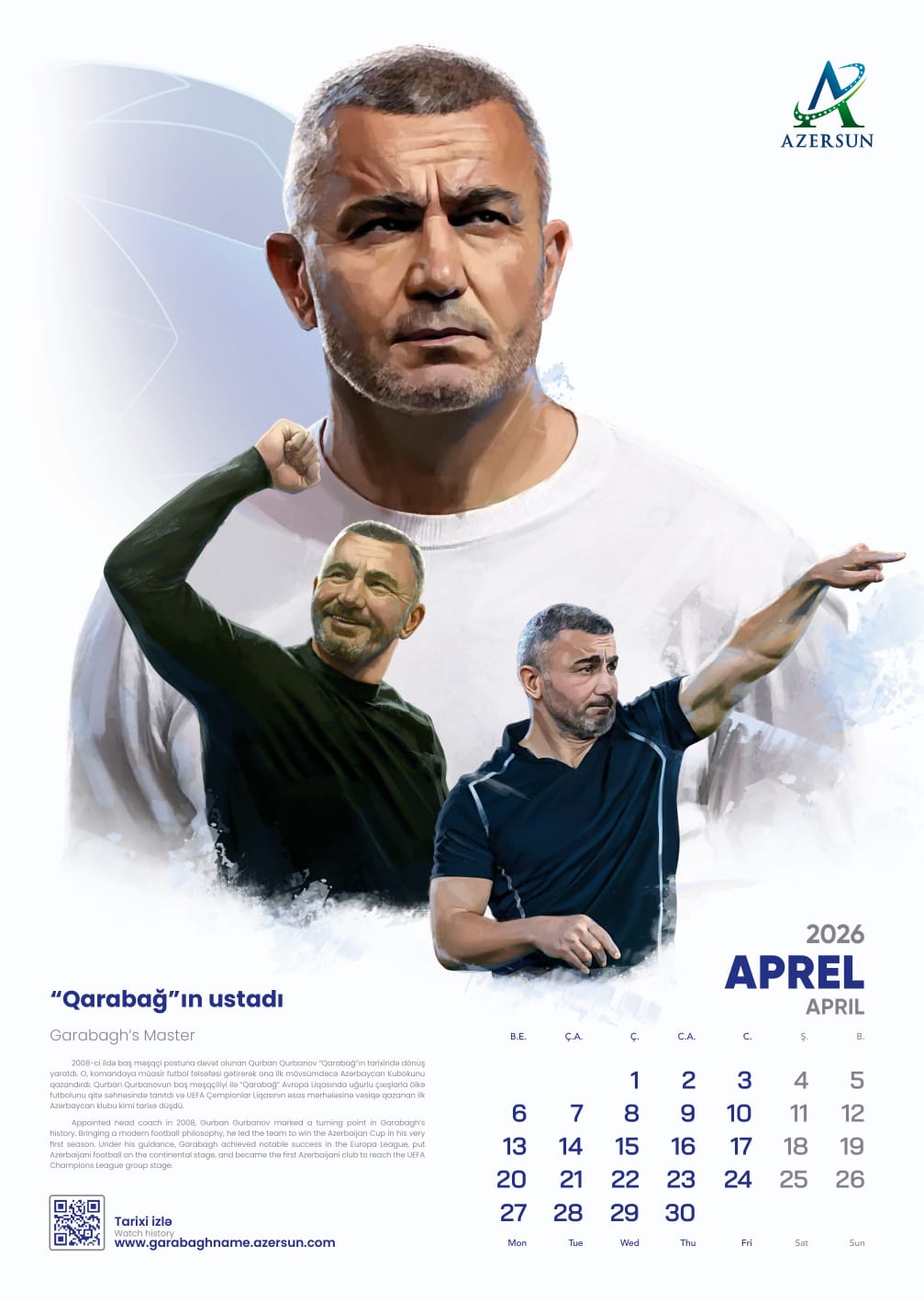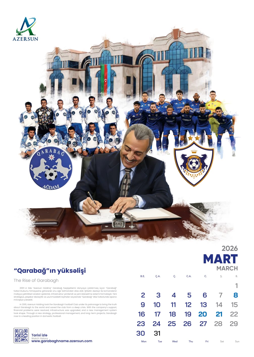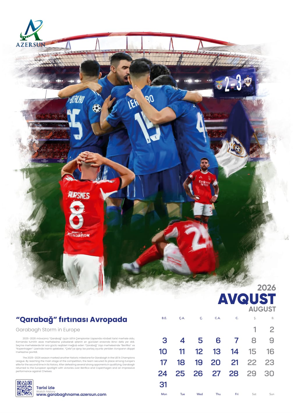 2026-cı il üçün hazırlanan bu təqvim son illərdə futbol sahəsində qızıl dövrünü yaşayan “Qarabağ” futbol klubuna həsr olunub.