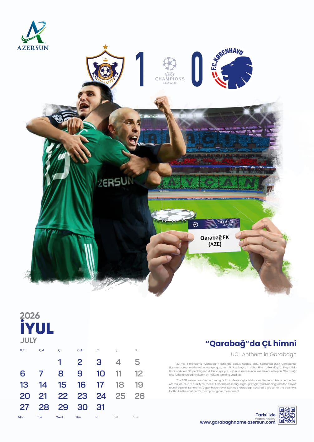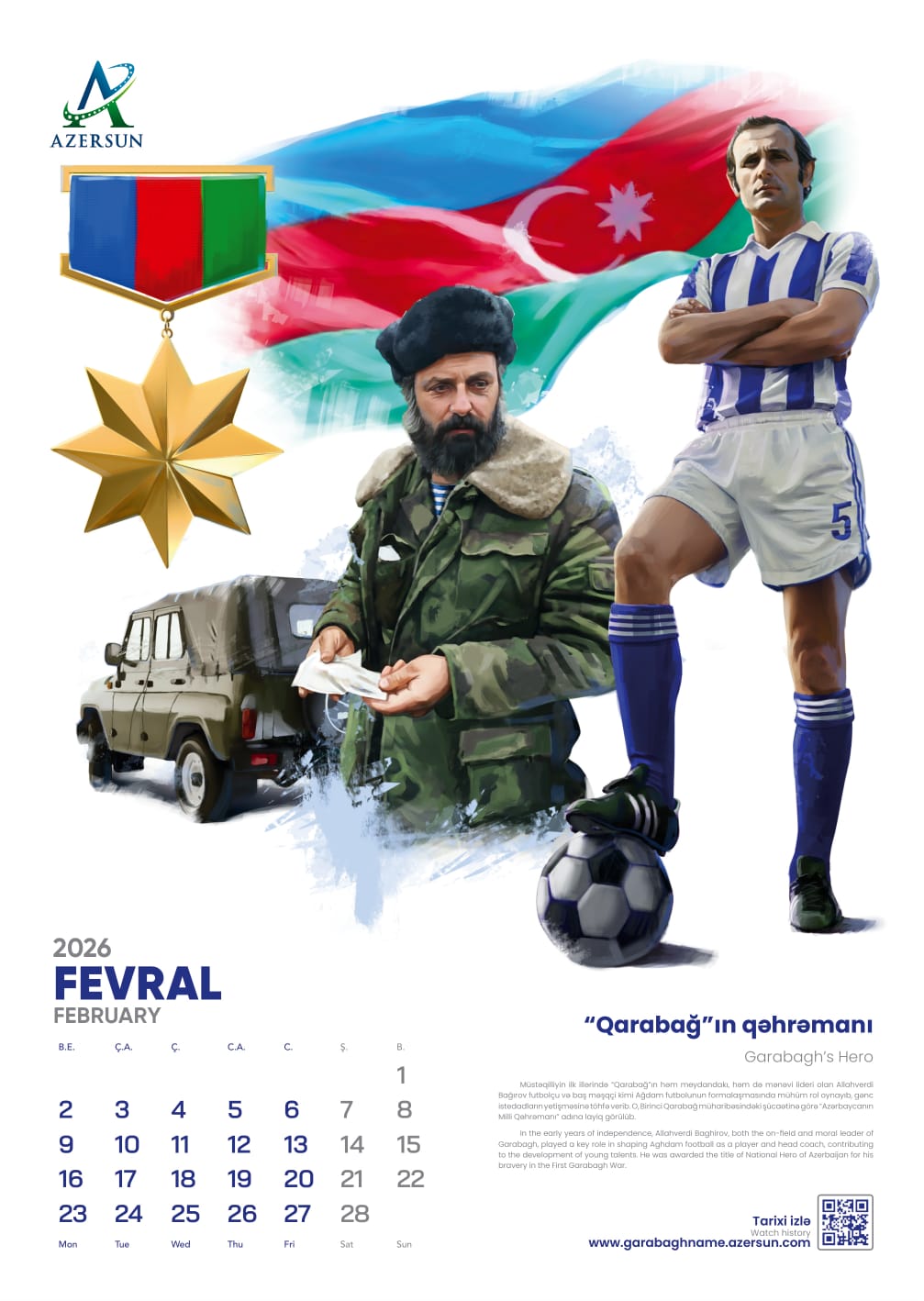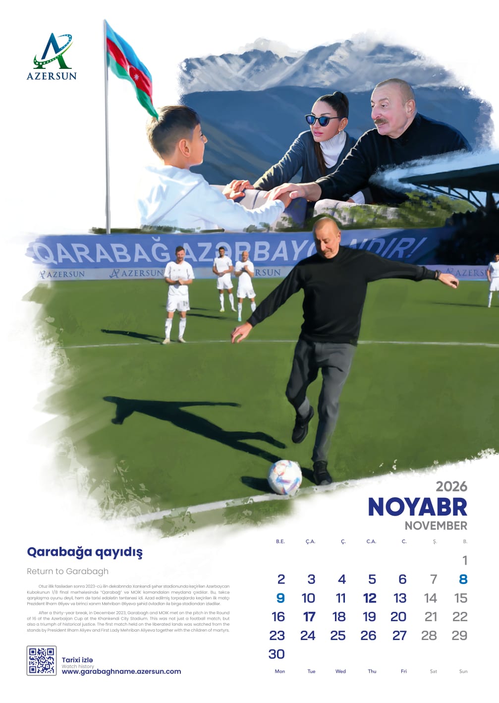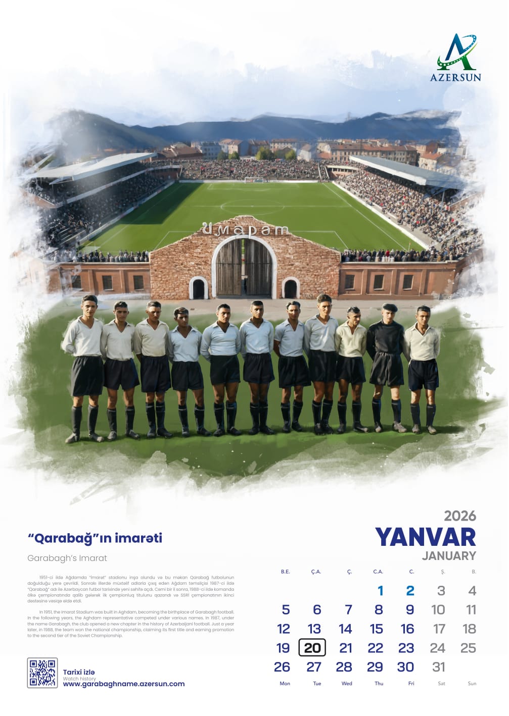 2026-cı il üçün hazırlanan bu təqvim son illərdə futbol sahəsində qızıl dövrünü yaşayan “Qarabağ” futbol klubuna həsr olunub.