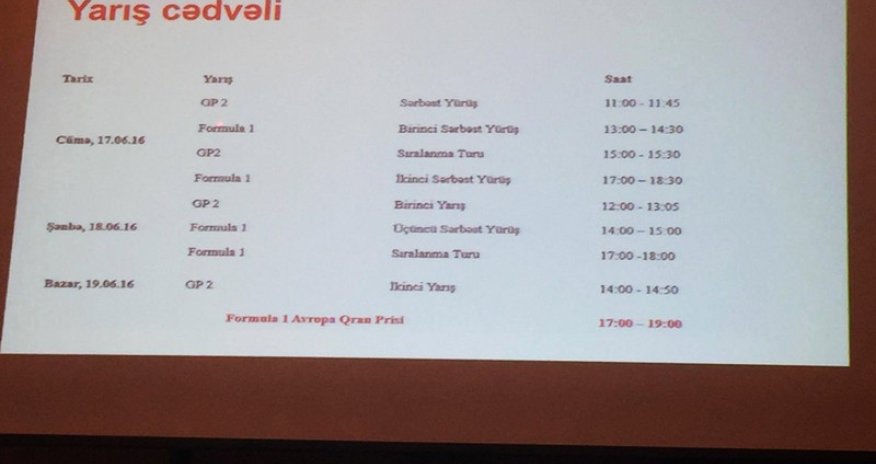 Qeyd edək ki, "Formula 1" yarışları iyun ayının 17-dən 19-dək davam edəcək.
