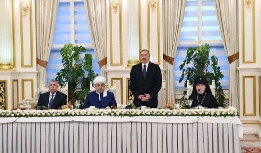 Çıxışında Ermənistan-Azərbaycan, Dağlıq Qarabağ münaqişəsinə toxunan dövlət başçısı bu ümummilli məsələnin həllində dini konfessiyaların nümayəndələri də daxil olmaqla bütün vətəndaşlarımızın bir nöqtəyə vurduqlarını bildirib.