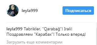 AzVision.az-ın məlumatına görə, Leyla Əliyeva ürək sözlərini sosial şəbəkədəki hesabında yazıb: "Təbriklər, "Qarabağ"! İrəli!"