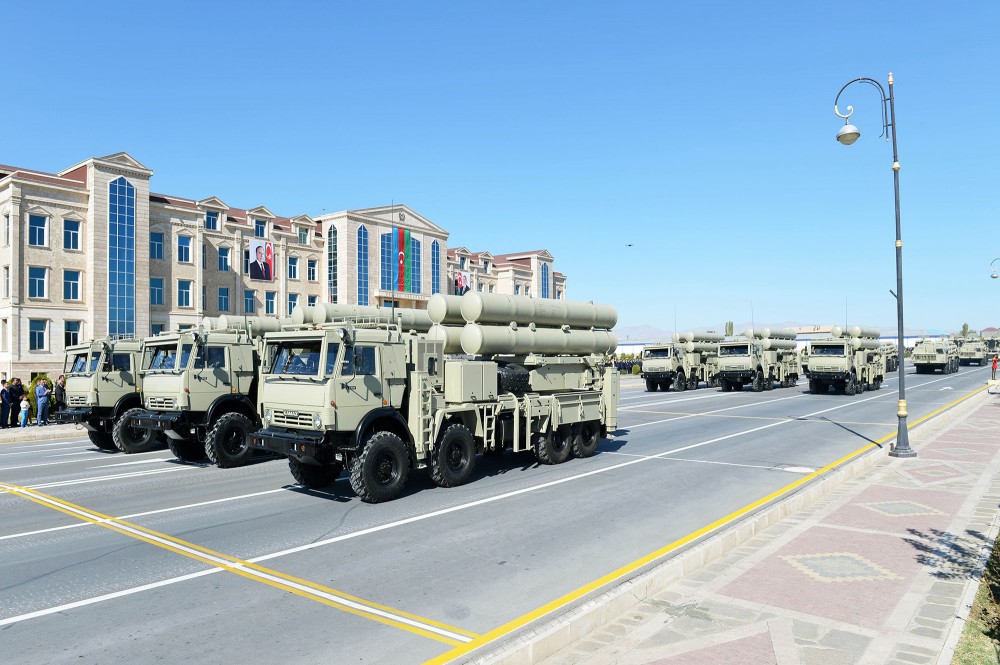Hərbi paradda "BM-21 Qrad”, "Qrad-LAR”, "Sakarya”, "Qasırğa” yaylım atəşli reaktiv sistemləri, "Smerc” döyüş maşını, idarəetmə məsafəsi və məhvetmə imkanı artırılmış "OSA”, "S-125” zenit raket kompleksləri, zirehli transportyor "BTR-82A”, piyadaların döyüş maşınları 2 və 3, özüyeriyən tank əleyhinə "Xrizantema” kompleksi, müasir aşkaretmə, izləmə və atəşaparma cihazları ilə təchiz olunmuş "T-72 M1” və "T-90C” tankları, eləcə də "T-90C” tankı üzərində quraşdırılmış "TOS-1A” reaktiv sistemi və özüyeriyən artilleriya qurğusu "Qvozdika” keçidi davam etdirib. Əlahiddə Ümumqoşun Ordunun silahlanmasında olan silah və texnika kolonunu "ZQ-23-2” zenit qurğularının keçidi tamamlayıb.