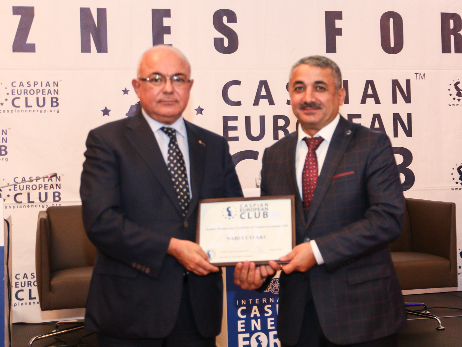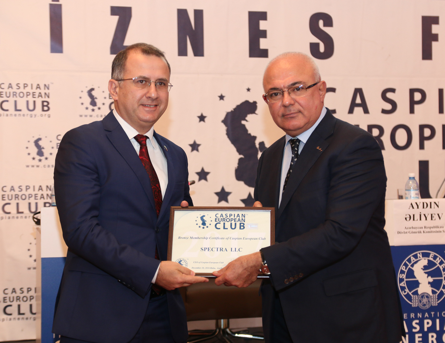 Biznes-forum zamanı Aydın Əliyevə Caspian European Club və Caspian American Club-un fəxri üzvlük sertifikatı təqdim olunub.