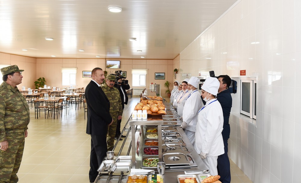 Prezident, Ali Baş Komandan İlham Əliyev hərbi hissədə yaradılan şəraitlə tanış oldu. Dövlətimizin başçısına məlumat verildi ki, 6 hektar ərazisi olan hərbi hissədə qərargah binası, üç əsgər yataqxanası, 360 nəfərlik əsgər yeməkxanası, müxtəlif təyinatlı anbarlar, məişət otaqları və digər infrastruktur bölmələri, 100 maşınlıq avtomobil parkı yerləşir.