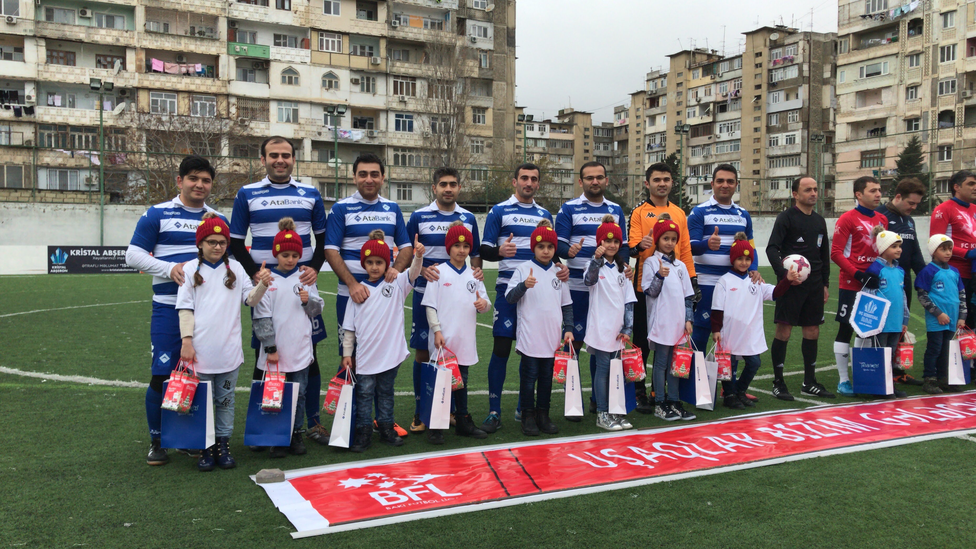Belə ki, "AtaBank" maliyyə sektoru ilə yanaşı, bütün sahələrə diqqət ayırmaqla daim seçilir. Ölkəmizdə idmana göstərilən dövlət qayğısı əməkdaşlarımızın da asudə vaxtlarını səmərəli keçirməklərinə səbəb olub. Belə ki, Bankımız Bakı Futbol Liqasında maliyyə sektorunu layiqincə təmsil edir. Dekabrın 24-də, Azərbaycan Prezidenti cənab İlham Əliyevin doğum gününə təsadüf edən matçımızda isə "AtaBank" daha bir layihə həyata keçirib. Bankımızın nümayəndələri oyun öncəsi "SOS uşaq kəndləri” təşkilatını ziyarət edib bir neçə yeniyetməni "Kristal R&R"la olan görüşə də dəvət edib. Həmin uşaqlar komandamız və rəqiblə birgə "Uşaqlar bizim gələcəyimizdir" şüarı ilə meydana daxil olublar, oyuna da baxıb, xüsusi hədiyyələrlə mükafatlandırılıblar. Bu dəstək oyunu izləyən azarkeşlər tərəfindən də böyük rəğbət və alqışlarla qarşılanıb.