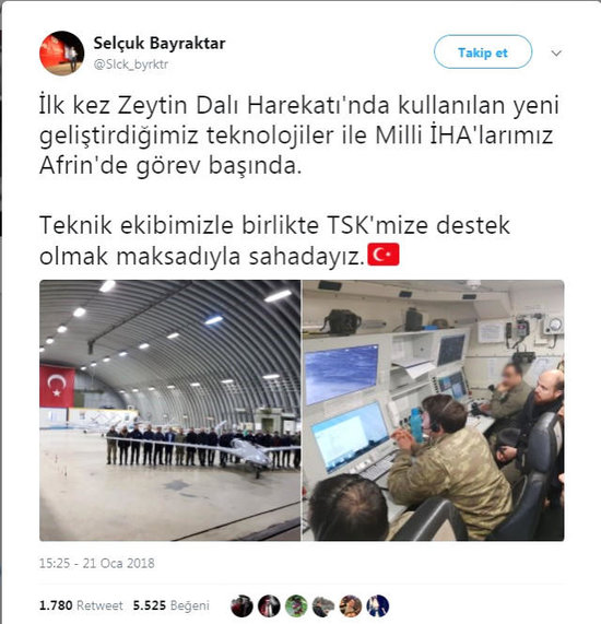"Yeni istehsal etdiyimiz ən son texnologiyalara cavab verən avadanlıqlarımız ilk dəfə "Zeytun budağı" əməliyyatında istifadə olunur. Texniki işçilərimizlə Türkiyənin Hərbi Hava Qüvvələrinə dəstək olmaq üçün burdayıq".