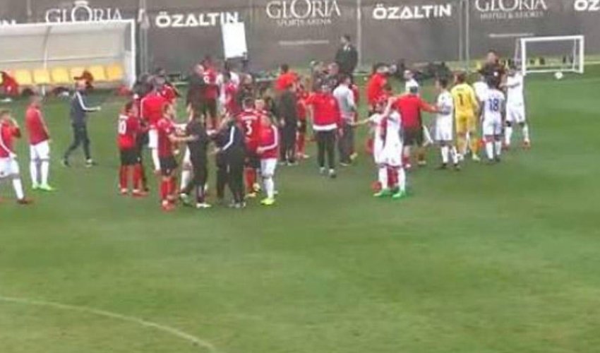 Türkiyənin Antalya bölgəsində "Qəbələ" və Makedoniyanın "Şkendiya" komandaları arasındakı yoxlama matçında kütləvi toqquşma baş verib.