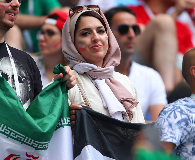 Dinin sütunları üzərində qurulan İranda qadınların daha çox qapalı geyimlərdə görməyə öyrəşmişik. Ancaq bu dəfə İran qızları daha fərqli ampulada çempionata yollanıb. Komandalarını dəstəkləyən İran qızlarına sosial şəbəkələrdə də maraq böyükdür.