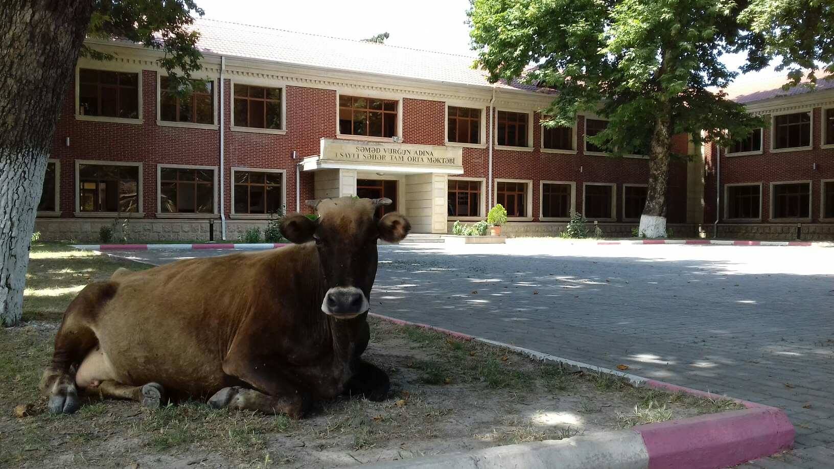 Şəhərin mərkəzində, Heyrəd Əliyev prospektində yerləşən məktəbin həyətində hər gün mal-qara otarılır. Həyətdəki yaşıllıqlar inəklər tərəfindən məhv edilir, ətraf ərazi çirkləndirilir.
