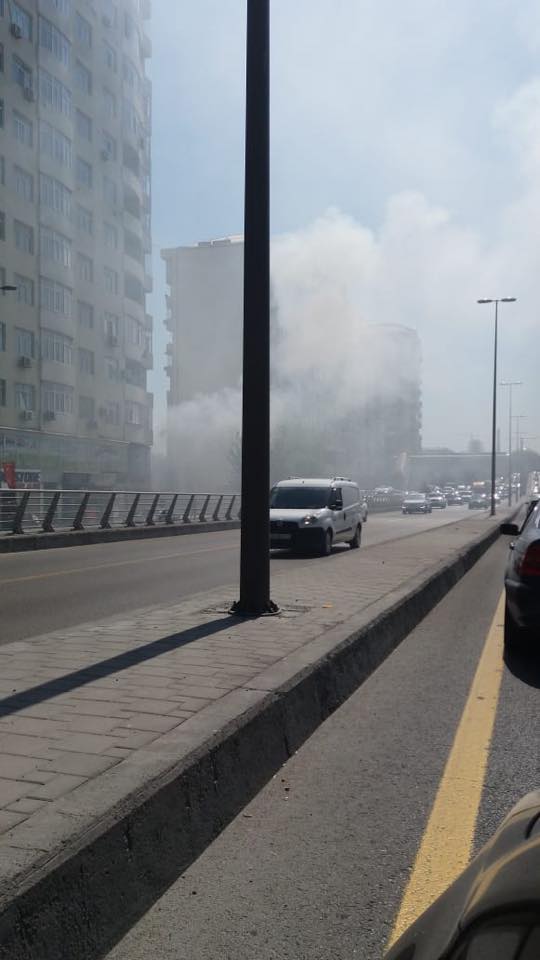 Paytaxtın Ziya Bünyadov prospekti yaxınlığında hündürmərtəbəli bina yanıb.
