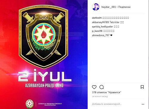 Azərbaycan Respublikasının Prezidenti İlham Əliyevin oğlu Heydər Əliyev şəxsi İnstaqram hesabında polis günü ilə bağlı paylaşım edib.