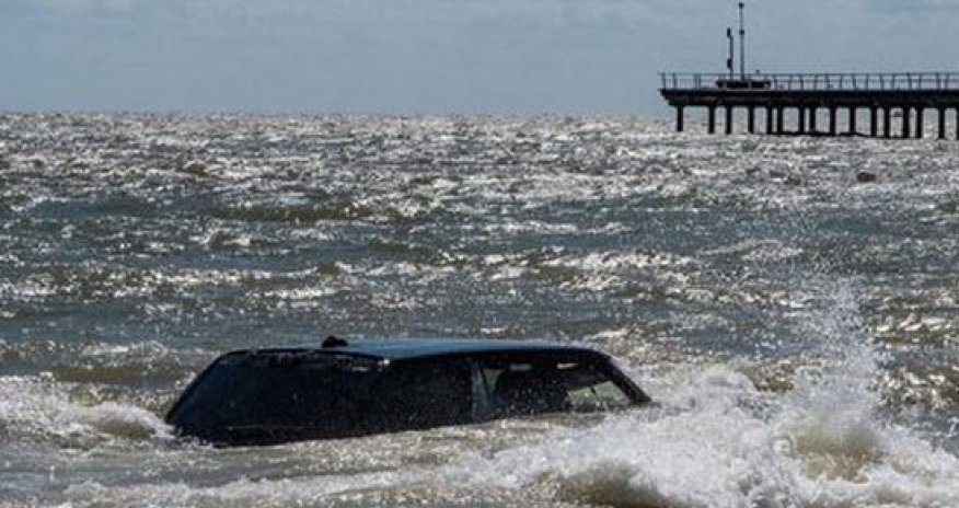 İngiltərənin Suffolk şəhərində dəniz kənarında "Range Rover" ilə GTA oyunundakı səhnələri canlandırmaq istəyən şəxsin avtomobili suda ilişib qalıb.