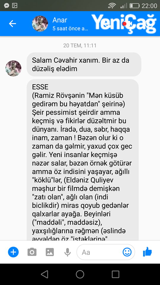 Yenicag.az ölümündən sonra da olsa, həmin esseni təqdim edir: