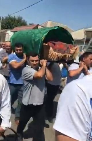 Mehman Hüseynov anasının tabutunu daşıyır - FOTO