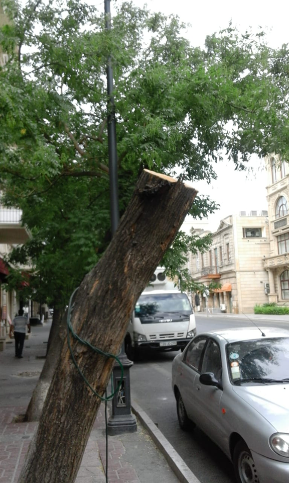 "Qafqazinfo”nun verdiyi xəbərə görə, gecə saatlarında Xəqani 35 ünvanında ağac küləyin təsirindən aşaraq yolun kənarında dayanmış avtomobilin üzərinə düşüb. Nəticədə "Mercedes” markalı 90 XT 850 nömrəli maşın zədələnib.
