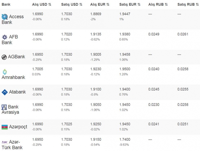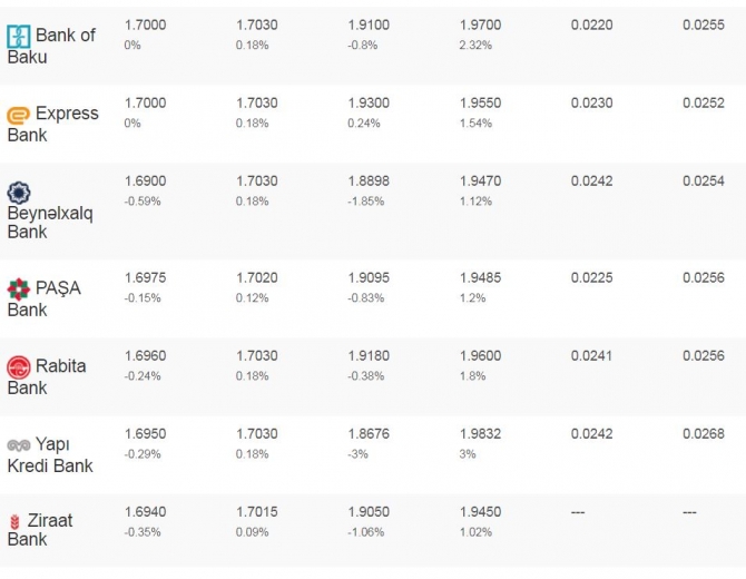 Qeyd edək ki, banklardakı məzənnələr gün ərzində bir neçə dəfə dəyişə bilər.