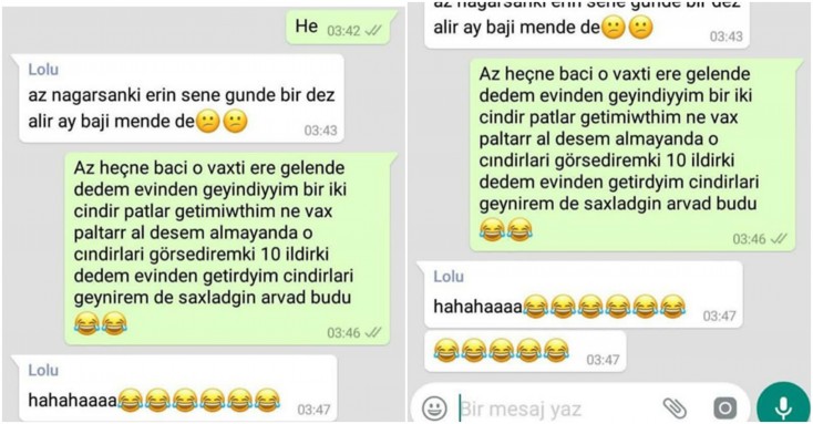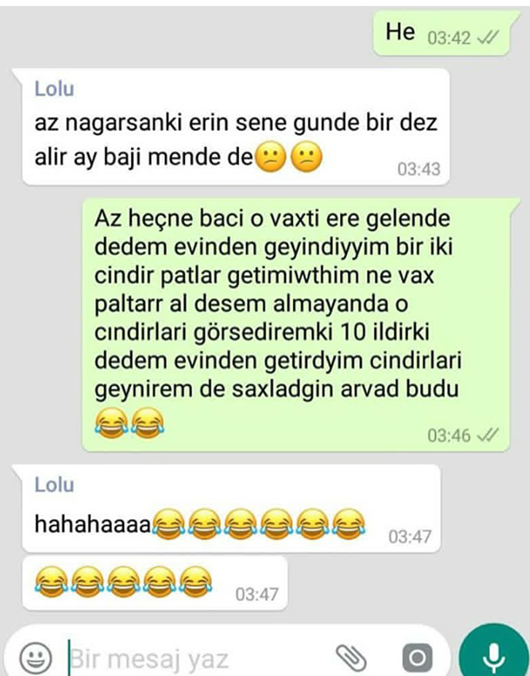 Bu dəfə sizinlə sosial şəbəkədə yayılan, izləyicilərin olduqca marağına səbəb olan iki rəfiqə arasındakı "WhatsApp" yazışmasını bölüşəcəyik.