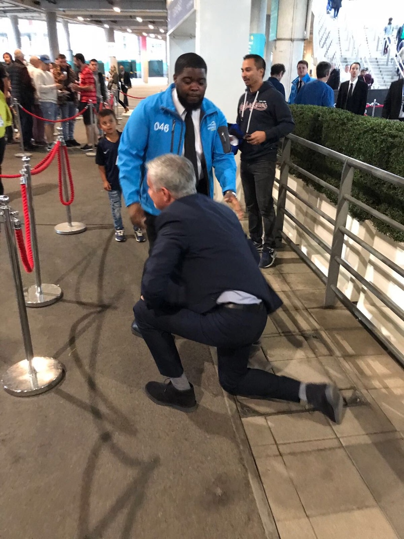 Mourinyu stadionun girişində yıxıldı - VİDEO