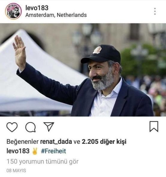 Oxu.Az Azerisport.com-a istinadla xəbər verir ki, foto Almaniyada yaşayan erməni reper Levo tərəfindən "Instagram”da paylaşılıb.