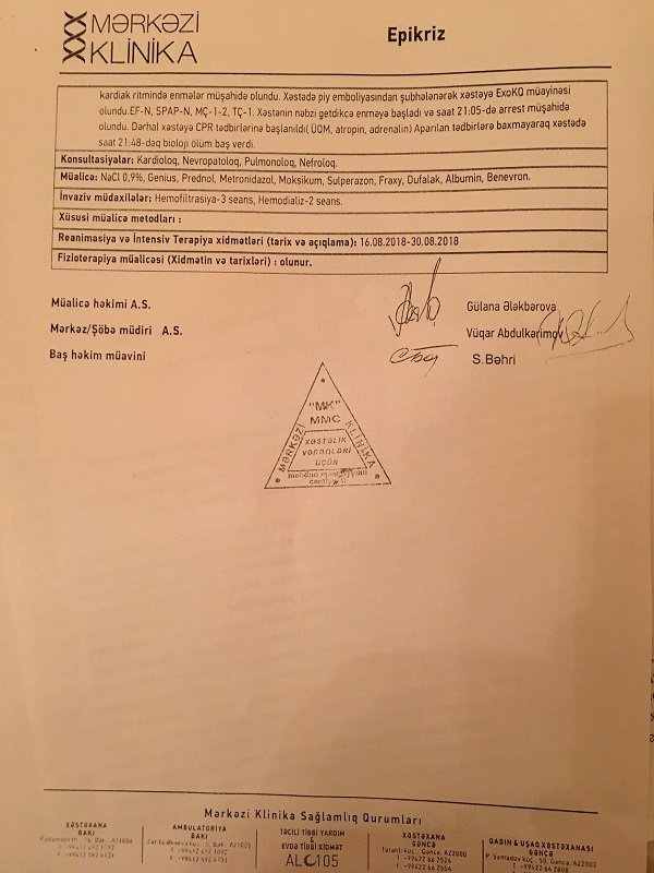 "Modern Hospital"dan isə virtualaz.org-a bildiriblər ki, Taryel Ömərov 2013-cü ildən klinikanın baş həkimidir və saysız-hesabsız xəstələri var, aralarında tanınmışlar da az deyil. Buna baxmayaraq xəstə ölümü ilə bağlı sualı yalnız özü cavablandıra bilər, özü isə klinikada deyil. "Gələn həftə yenidən müraciət edərsiz, boş vaxtı olarsa həkim sizinlə danışar", - adını açıqlamaqdan imtina edən klinikanın qadın əməkdaşı əlavə edib.