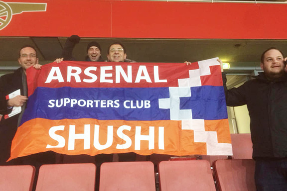 Oxu.Az xəbər verir ki, Artur Zakaryan adlı Şuşadan olan bir erməni azarkeş üzərində erməni terrorçu Monte Melkonyan və qondarma Dağlıq Qarabağın bayrağı ilə meydana çıxıb.