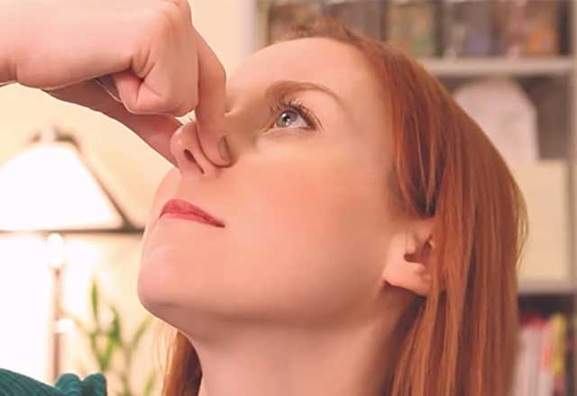 4.Sonda burnunuzu sıxaraq, səfəsinizi saxlayın və başınızı yuxarı qaldıraraq gözləyin. Bir az sonra nəfəsinizi buraxın və burun tutulması aradan qalxacaq.
