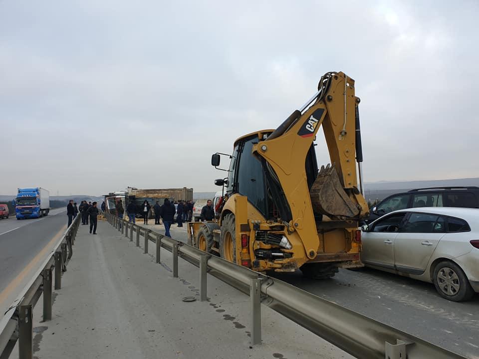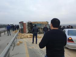 Bu gün Bakı-Qazax magistral yolunun Hacıqabul rayonu ərazisindən keçən hissəsində "KamAZ” markalı yük maşını qəzaya uğrayıb.
