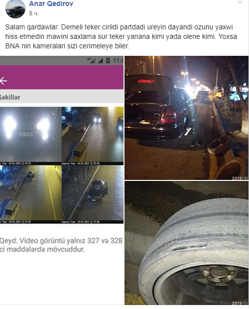 "Qafqazinfo”nun verdiyi xəbərə görə, vətəndaş Anar Qədirov bildirib ki, idarə etdiyi maşının təkəri partladığı üçün məcburi dayansa da, BNA ona cərimə yazıb:
