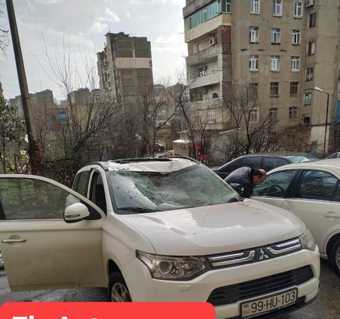 Publika.az xəbər verir ki, bu gün güclü külək Yeni Günəşli qəsəbəsində 9 mərtəbəli binanın damında quraşdırılmış plastik su çənini yerə atıb. Küləyin təsiri nəticəsində yerindən oynayan su çəni daha sonra həyətə yuvarlanıb. Çən həyətdə park edilmiş "Mitsubishi Outlander” markalı minik avtomobilinin üstünə düşüb. Nəticədə avtomobil şüşələri qırılıb, ban hissəsi tamamilə əzilib.