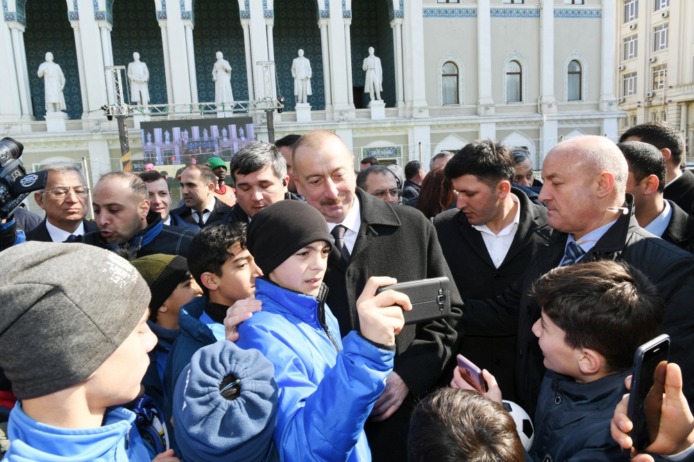 Anews.az xəbər verir ki, matçdan öncə prezident azyaşlı futbolçularla görüşüb.