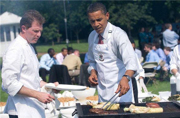 Obamanın həyat yoldaşı Mişel Obama isə sağlam qidalanmanın tərəfdarıdır. Belə ki, o Ağ evin həyətində bostan salıb. O, bostandan 700 kq-a yaxın məhsul toplayıb.