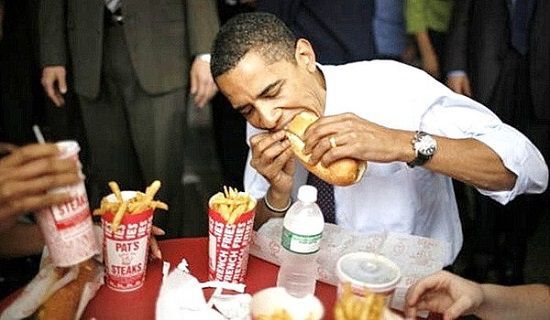 ABŞ prezidenti amerikalıların əksəriyyəti kimi fast fuda üstünlük verir. Hətta 2010-cu ildə o Rusiya prezidenti Dmitri Medvedevi də fast fud restoranına da dəvət etmişdi. O zaman prezidentlər salat, fast fud və kartof qızartması sifariş etmişdilər. ABŞ prezidenti pivənin də əleyhinə deyil.