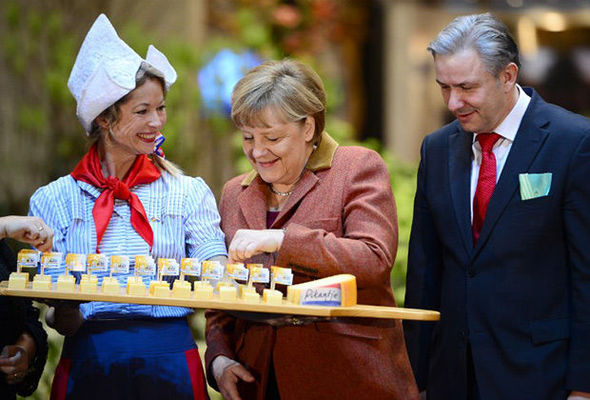 Kanslerin sevimli məhsulları siyahısında kələmli donuz kolbasası da var. Merkelin şəxsi aşpazının sözlərinə görə, o pendiri çox sevir və siyasətçilərin çoxu kimi çaxır içir. Amma bəzən bir bokal piyvədən də yan keçə bilmir.