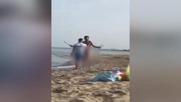 Sahildə bir vətəndaş tərəfindən çəkilən görüntülərdə vəzifəli şəxs və çılpaq adamın mübahisə etdiyi, daha sonra dava etməyə başladığı və davaya başqa bir adamın da daxil olaraq çılpaq adama hücum çəkdikləri görülür.