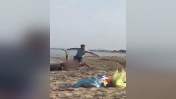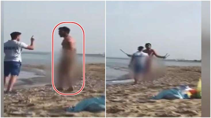 Çimərlikdə çılpaq şəkildə gəzən şəxs vətəndaşların hücumuna məruz qaldı - FOTOLAR