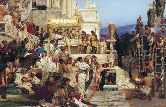İsa peyğəmbərin ölümündən təxminən 30 il sonra, 64-cü ildə Neron İsanın şagirdlərindən biri Pyotru edam edir. Pyotr bütün Roma üzrə xristianlığı yaymağa çalışırdı, nəticədə Neron tərəfindən tutulur və başı aşağı şəkildə çarmıxa çəkilir. Pyotru sirkdə - Neronun xaçpərəstlərin ictimai edamları üçün xüsusi olaraq seçdiyi məkanda edam edirlər.