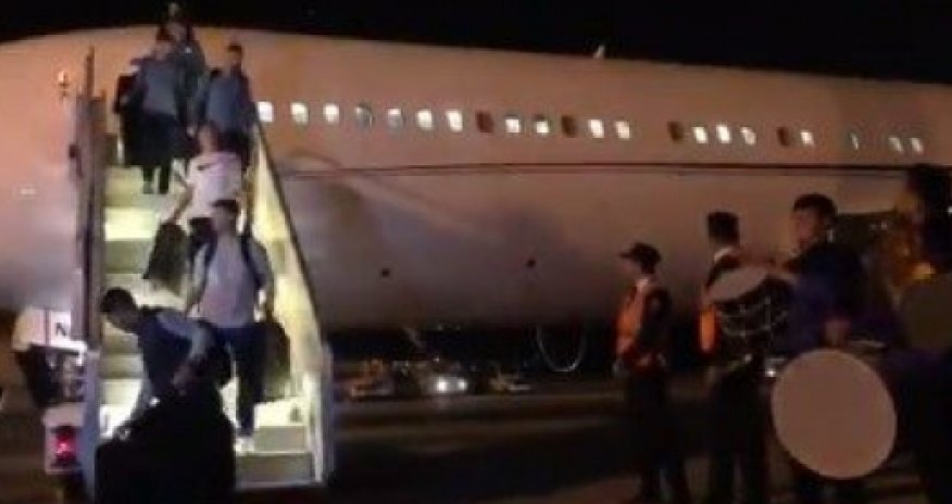 "Çelsi" də "Arsenal" kimi hava limanında zərb musiqi alətlərinin sədaları altında qarşılanıb.