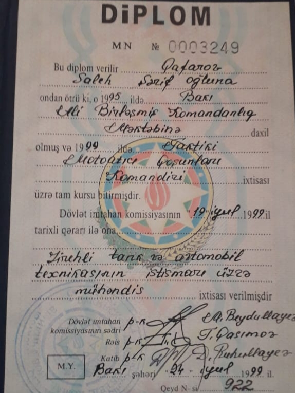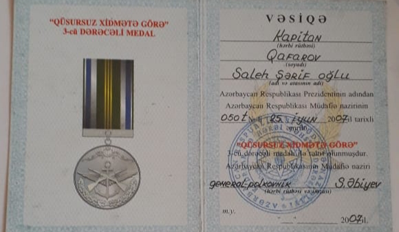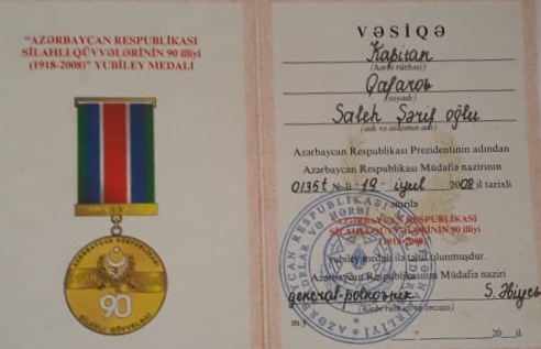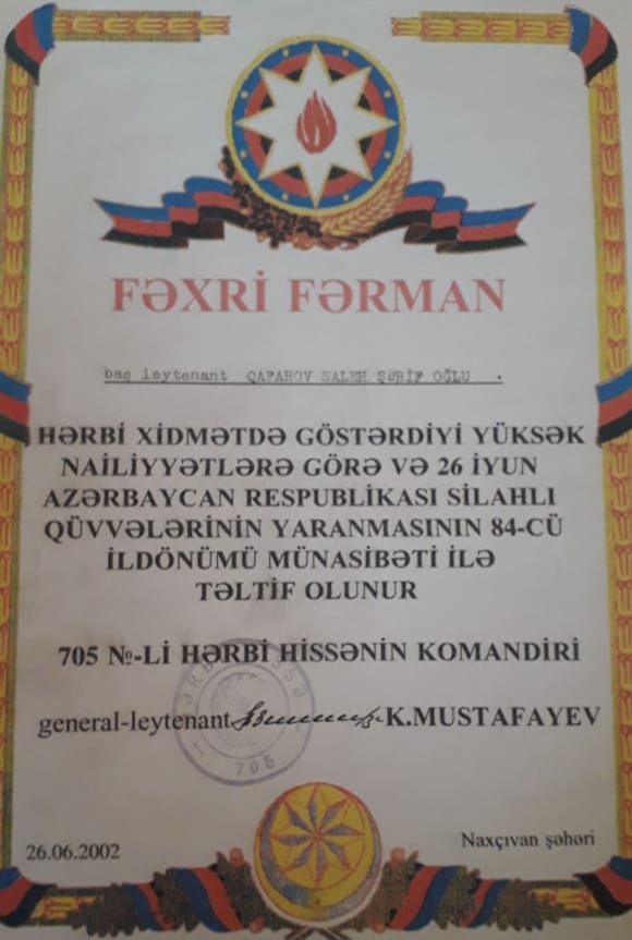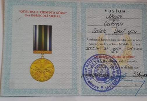 Saleh Qafarovun xidmət zamanı təltifləri