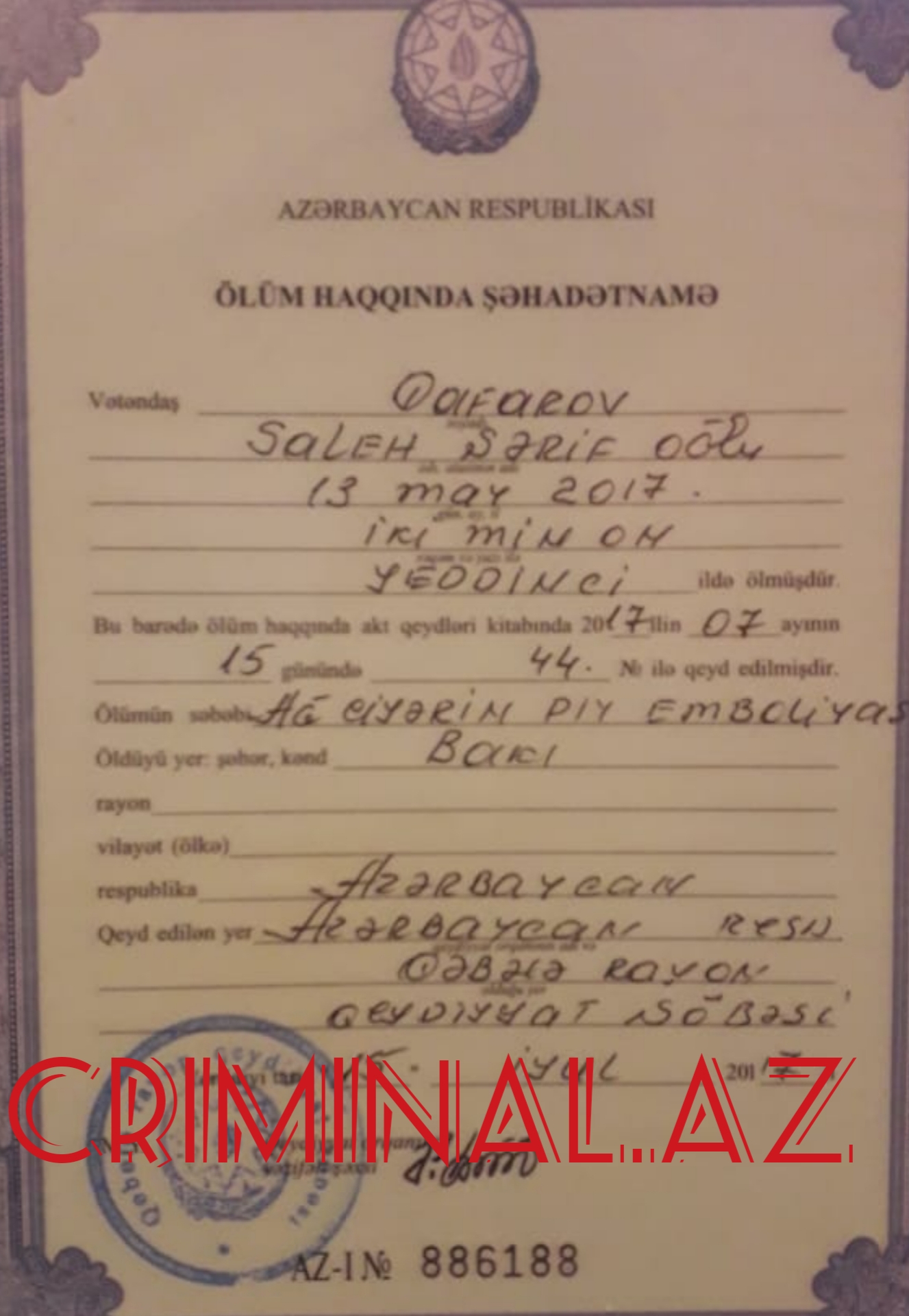 Ölüm haqqında şəhadətnamə