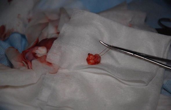 Yad cismin bədəndən xaric edilməsi üzrə aparılan əməliyyat zamanı uşağın xayasından görünüşünə görə adi dişdən fərqlənməyən diş çıxarılıb. Tibb elmində bu hal teratoma termini ilə tanınır.