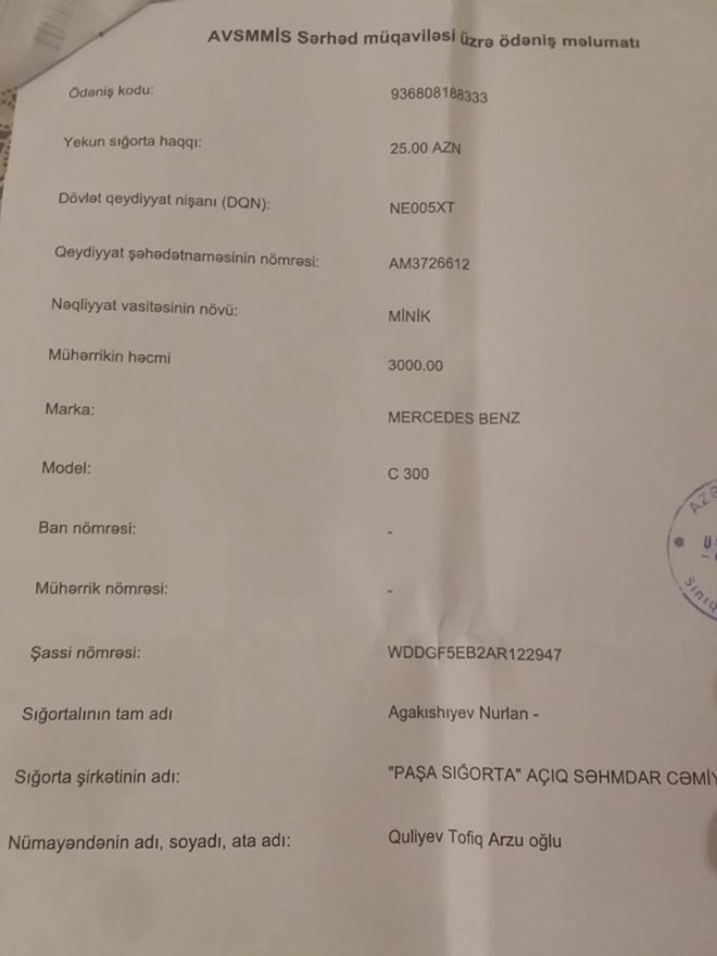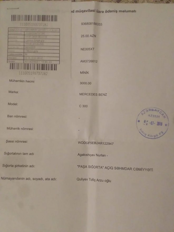 Həmçinin, ona məxsus olan "VAZ 2106” markalı avtomobil "Mercedes-Benz” markası kimi sənədləşdirilib.