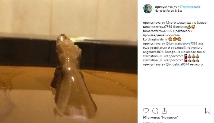 Rusiyanın Ulyanovsk vilayətinin İT-korporasiyasının rəhbəri Svetlana Openışeva Azərbaycanda "şokolad vannası”ndan paylaşdığı fotoya görə müzakirələrə səbəb olub.