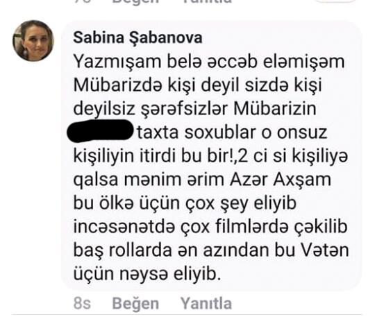 Aktyor, teleaparıcı Azər Axşamın həyat yoldaşı Səbinə Şabanova Azərbaycanın Milli Qəhrəmanını təhqir edib.