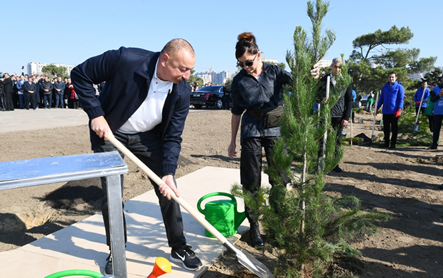 Sonra Prezident İlham Əliyev və birinci xanım Mehriban Əliyeva parkda ağac əkdilər.