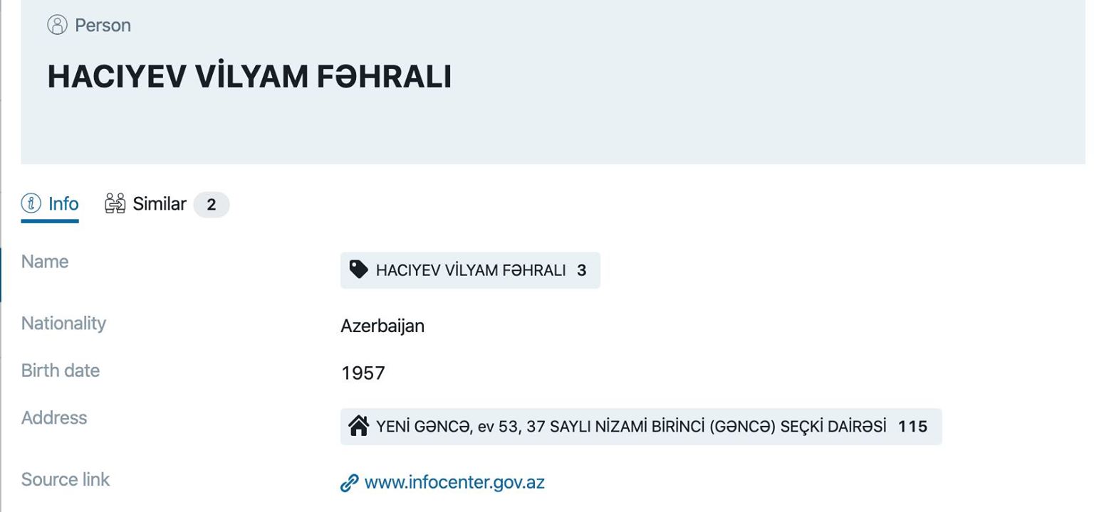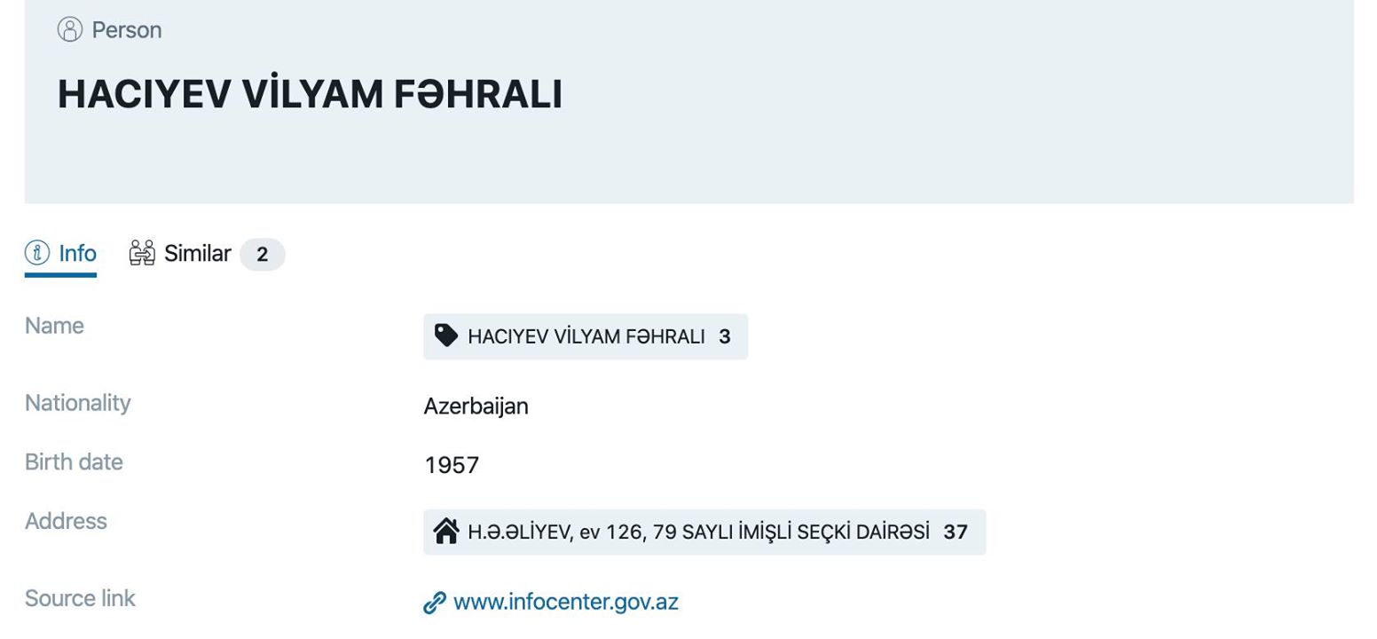 İcrabaşı Vilham Hacıyevin Həsən Əliyev küçəsində villa, "Sahil” metrosu üzərindəki çoxmərtəbəli binada 5 otaqlı mənzil, müxtəlif ticarət obyektləri, Dubayda biznes və daha nələri.. mövzusu isə Xəbərman xəbər portalına istinadən yazılıb. Bu da mənbə (https://xeberman.com/news/siyaset/13126-mishli-icra-bashcisi-vilyam-haciyevin-mulkleri-shok-syah.html).
